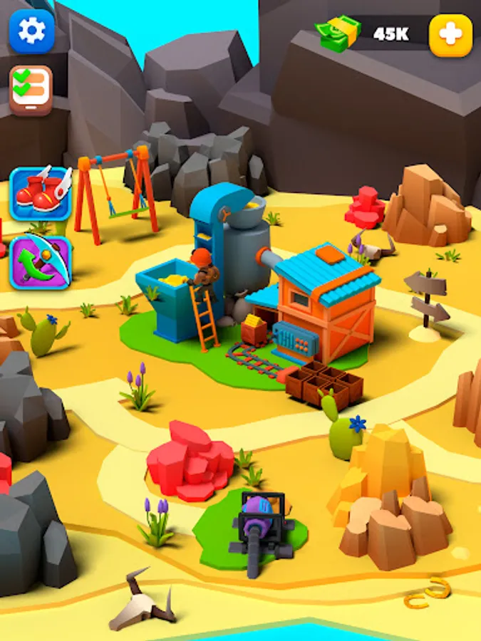 Immerse yourself in the exciting world of the Gold Rush, where every booty is one step closer to riches. Collect the necessary materials such as firewood, sand, stones and, of course, the precious gold itself. Use these resources to build buildings, upgrade equipment, and raise your mining empire to unprecedented heights. It's time to mine for gold and claim your fortune! 💰💰💰
