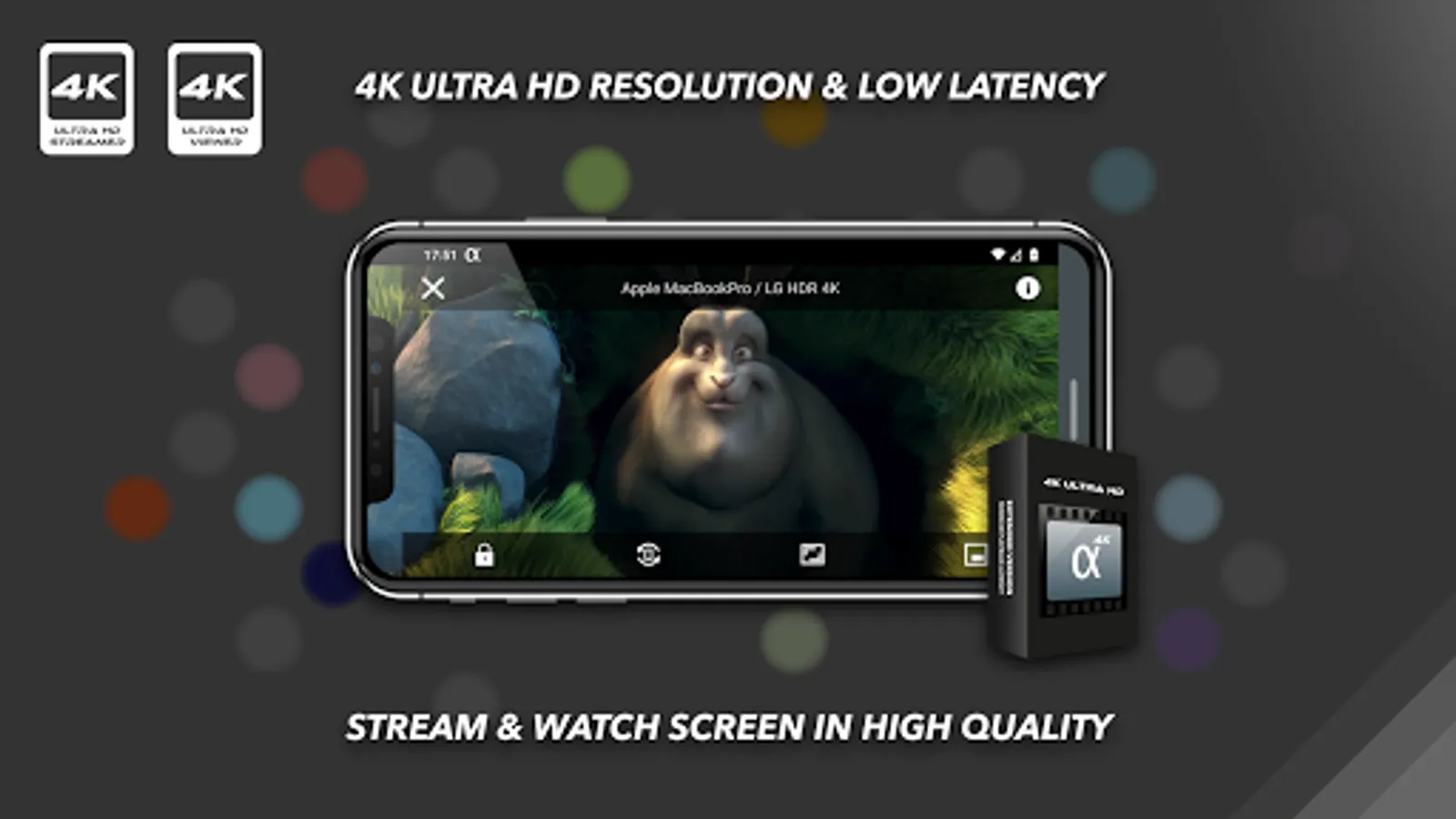Experience brilliant 4K Ultra HD video quality in an extended version of alfacast. Share and split your live video screen stream to many devices simultaneously. App allows you to broadcast and to watch any content from desktop. Stay secure with alfacast while watching live streaming, the app supports end-to-end encryption technology. Automatic discovery technology will allow you to enjoy using the app. Forget about logins, installation and the long process of setup video broadcast servers, for alfacast it is simply not necessary. Stream your content from a video camera apps, photo album apps, stream video from player apps, show presentations, slides, photos or pictures anywhere and anytime!