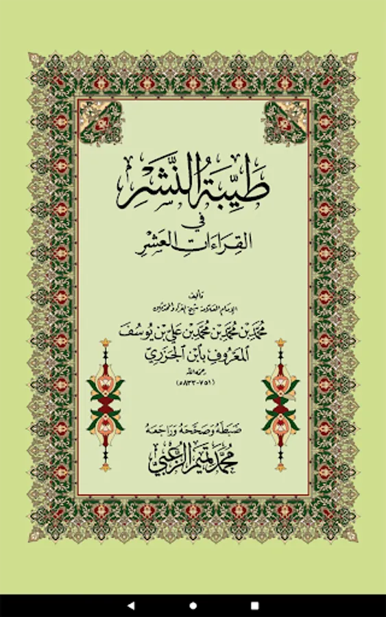The text of Tayyibat al-nashr, a didactic poem on the Ten Qira’at composed by Imam Muhammad ibn Muhammad ibn Muhammad, famously known as Ibn al-Jazari (d. 833). Vocalized, emended, and edited by Shaykh Muhammad Tamim al-Zoubi (Allah preserve him). This app is a digitization of the most recent print edition.