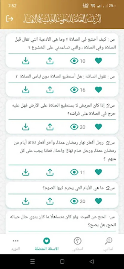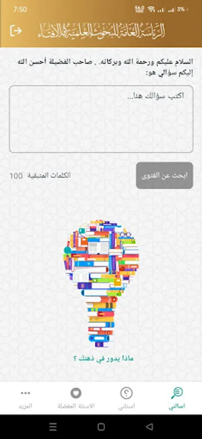 The service provides the fatwas of legitimacy through the General Presidency of the Fatwa and respond to the questioners through the qualified scientists are also follow up and archiving the fatwas that are provided with the protection of privacy