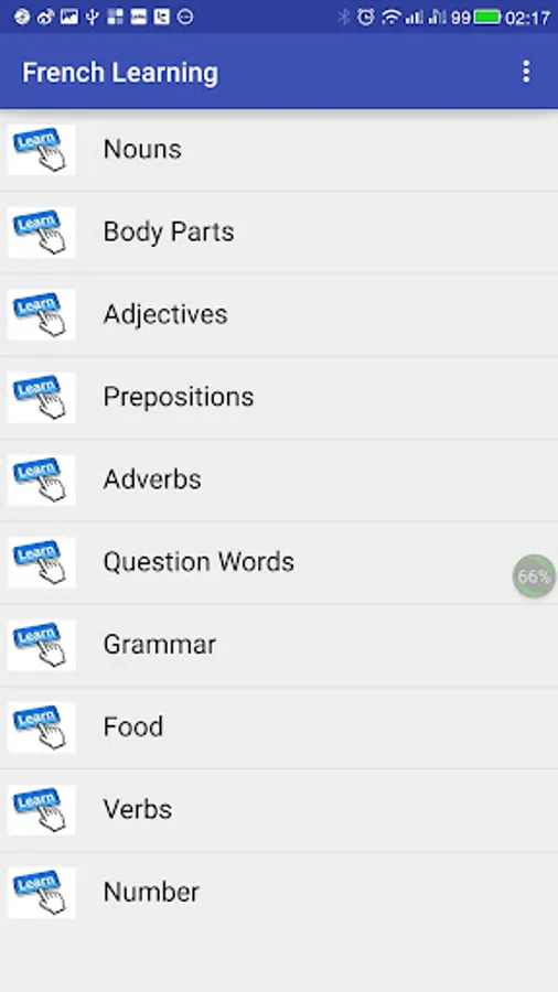 This is an app designed and tailor-made for French learner on basic knowledge, most of the apps on this topic is for travel purpose. A series of languages types will be launched from time to time. This is an app free of charge for encouraging French learner or any interested parties. This is the sole purpose for me to publish many types of languages of the apps now and later on. The app is divided into various sections in which classified and systematical word, phrases and sentence are shown with audio. This could be illustrated by many tailored-made scenarios. With an app in the mobile phone or other devices, the users can learn vat any time and everywhere. The content is filled with various grammar and designed for different level, it included sentence which let you improve and consolidate the language power through continuous practising. More reading and listening increase the knowledge and command of the language. This app provided a very convenient way of learning.