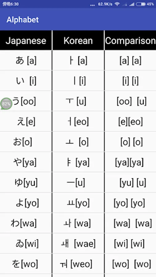 The recommendation of bilingual study between Japanese and Korean for this app, It is because the first page of the app which the alphabet of is indicated three columns, the first column is the list of the Japanese alphabets in the form of a syllable and the second column shows the Korean alphabets in the form of a letter and combined to form a syllable, finally the third column where the similar pronunciation are shown line by line, and then compared with each other. It is clearly shown the differences and the similarity of the two languages, so learning is more interested. The purpose of publishing this app is learning the languages in pair is to increase the interest of learning them and learning in an enjoyable way.
