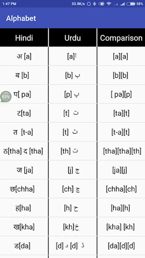 Apart from the differences in Alphabet, they are 80% of the same either in pronunciation and sentence structure. Once you learn the alphabet of Hindi and Urdu relatively through this app. You shall easily learn in a smooth way,