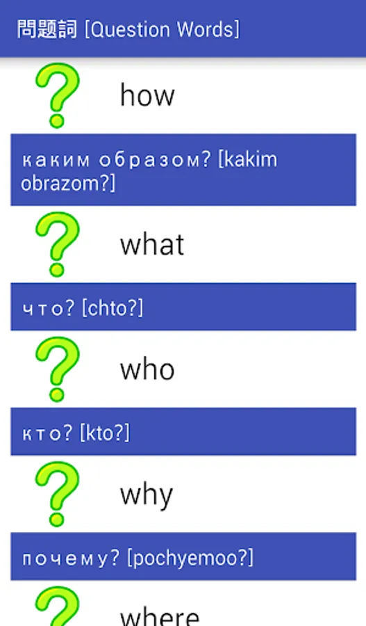 This is an app designed and tailor-made for Russian learner on basic knowledge, most of the apps on this topic is for travel or business purpose. A series of languages types will be launched from time to time. This is an app free of charge for encouraging Russian learner or any interested parties. This is the main purpose for me to publish many types of major languages of the apps now and later on.