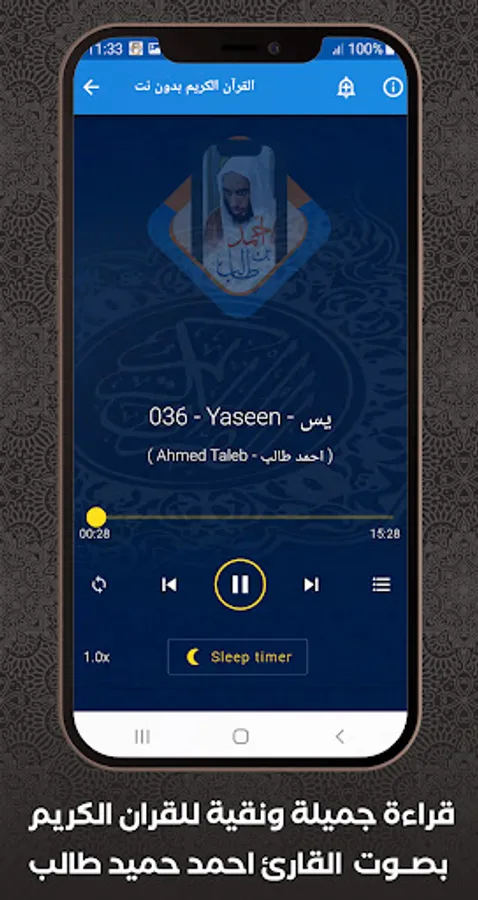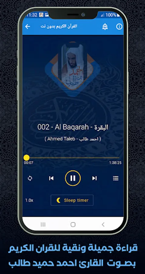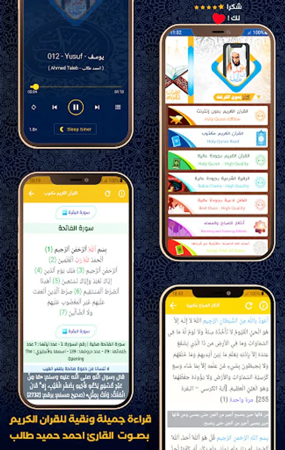 ⯈ The application is designed professionally, smoothly and easily in accessing content, and thus it is one of the best Islamic applications that help you listen and read Quran recitations without the Internet by Sheikh Ahmed Bin Taleb, for you to enjoy everywhere