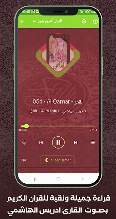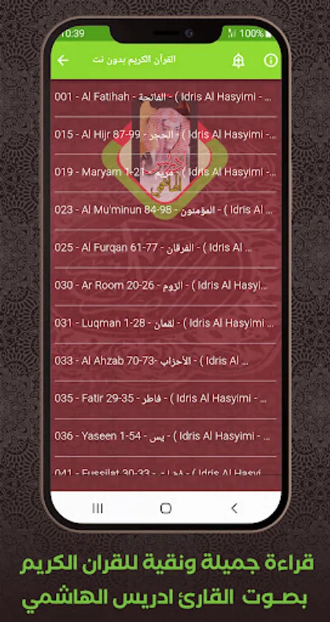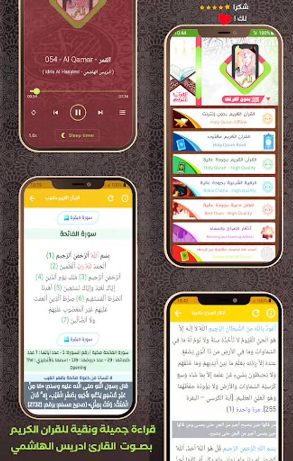 ⯈ This new application for the Holy Quran without the Internet provides access to the collection of exclusive Quran recitations, supplications, recitation morning and evening remembrances, with the voice of Sheikh Idrees Al Hashemi.