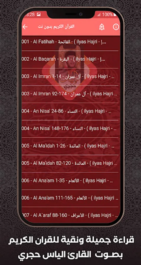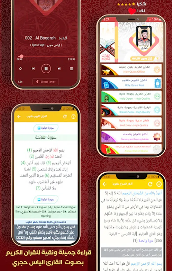 ⯈ You can use this application with ease and also read and listen to the surahs of the Noble Qur’an, enjoying the voice of the reciter Ilyas Hajri, who is one of the most famous reciters