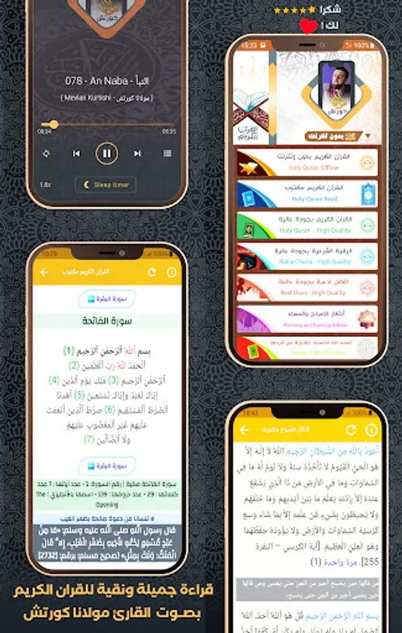 ⯈ This new application for the Holy Quran without the Internet provides access to the collection of exclusive Quran recitations, supplications, recitation morning and evening remembrances, with the voice of Sheikh Mevlan Kurtishi.