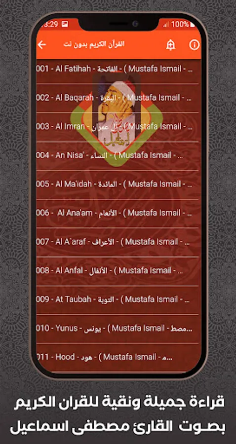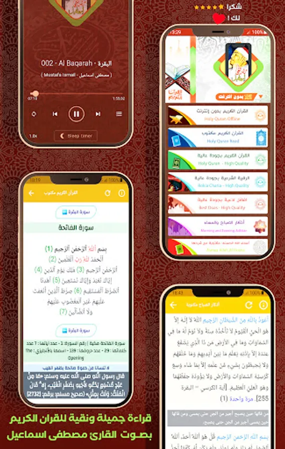 ⯈ You can use this application with ease and also read and listen to the surahs of the Noble Qur’an, enjoying the voice of the reciter mustafa Ismail, who is one of the most famous reciters