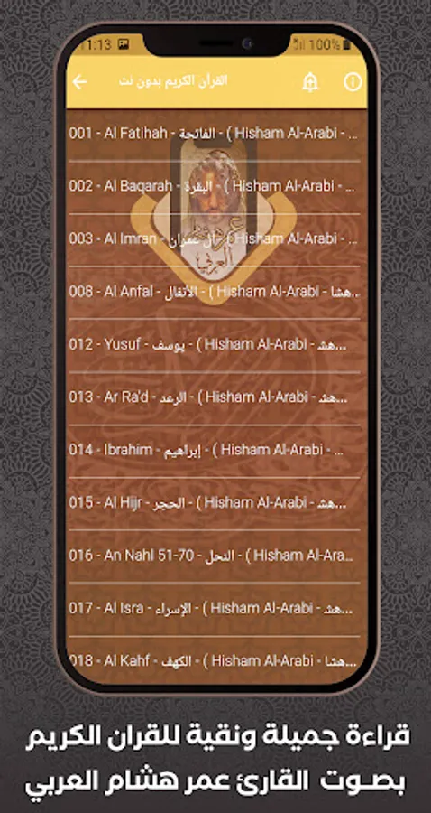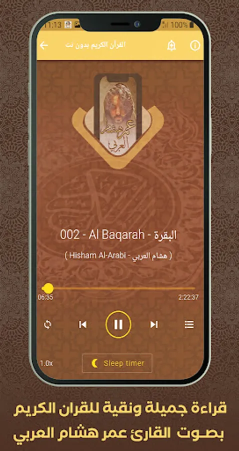 ⯈ The application is designed professionally, smoothly and easily in accessing content, and thus it is one of the best Islamic applications that help you listen and read Quran recitations without the Internet by Sheikh Omar Hisham Al-Arabi, for you to enjoy everywhere