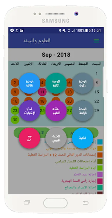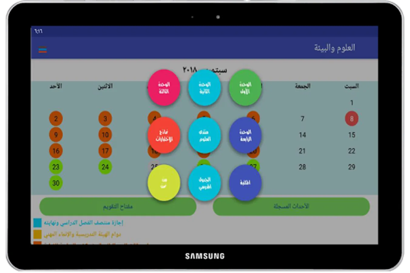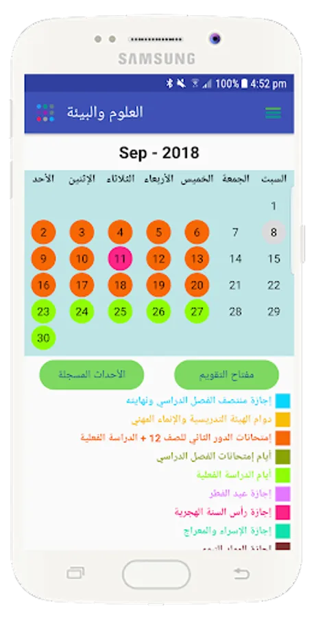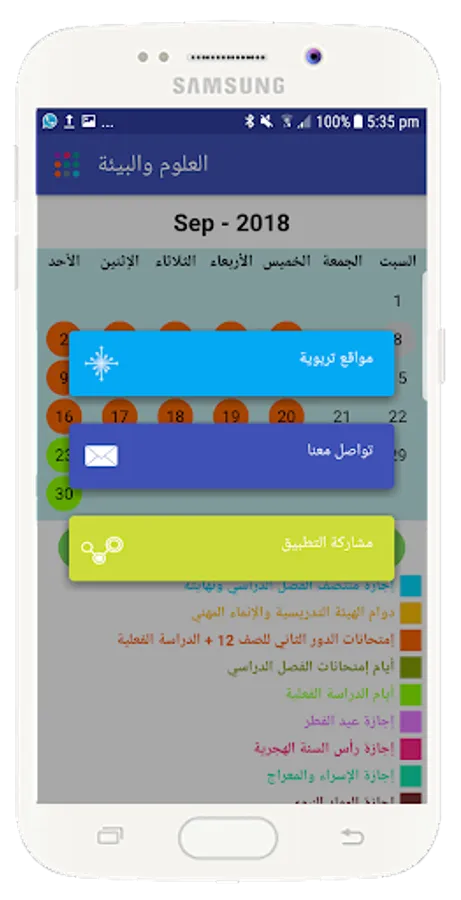 1 - An attractive interface containing the school calendar with the events that accompany the school day according to the calendar issued by the Ministry of Education.