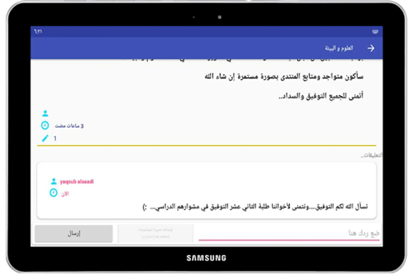 6 - Science Forum, interactive window for students through which the student can include a question in the forum to be discussed in the forum, and the student can include an image explaining the question or solution.