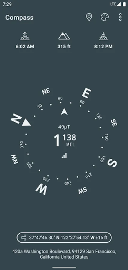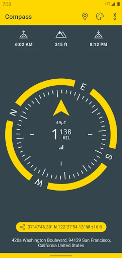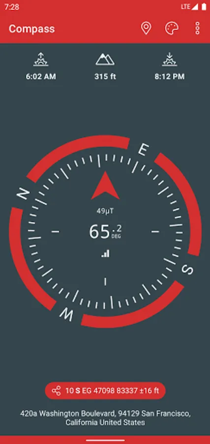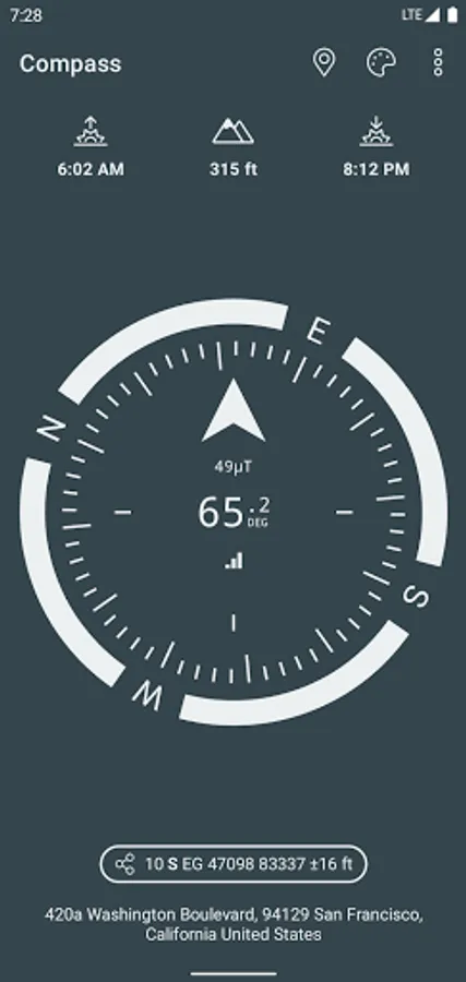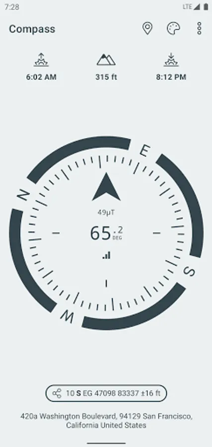 A simple and easy to use Compass to retrieve useful information about your current position such as true Geographic north and true altitude above sea level.
