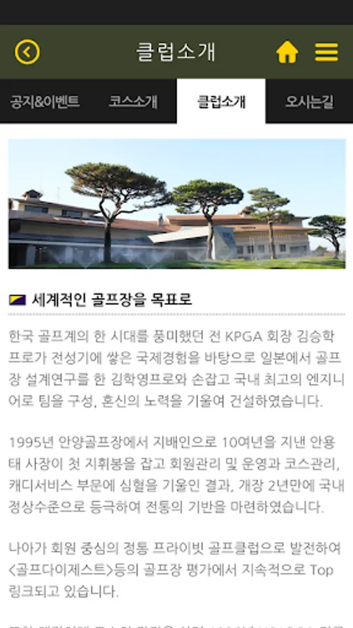 Based on the international experience accumulated by the former KPGA chairman Seung-hak Kim, who has enjoyed a time in the Korean golf industry, he teamed up with Kim Hak-young, a golf course design researcher in Japan, to build a team with the best engineers in Korea and build it with his best efforts.
