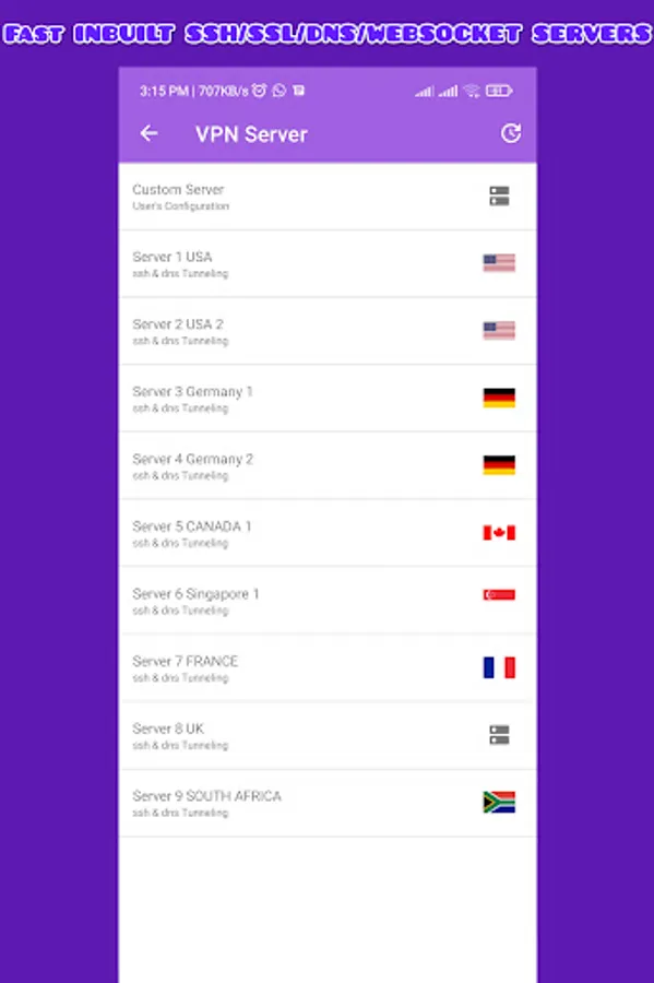 - Secure your connection using SSH, WEBSOCKET, SLOWDNS tunnel