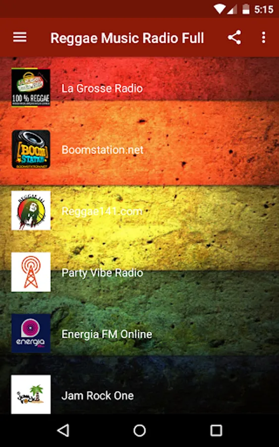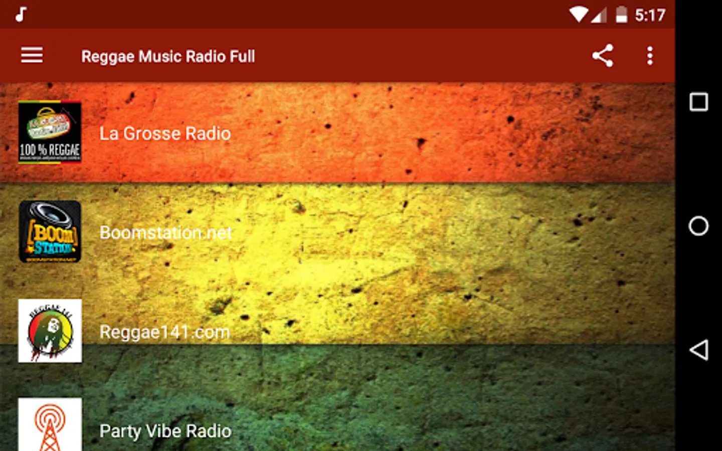 "Reggae Music Radio Full" is compact, stylish and easy to use and should not be missing from any reggae fan's Android device!