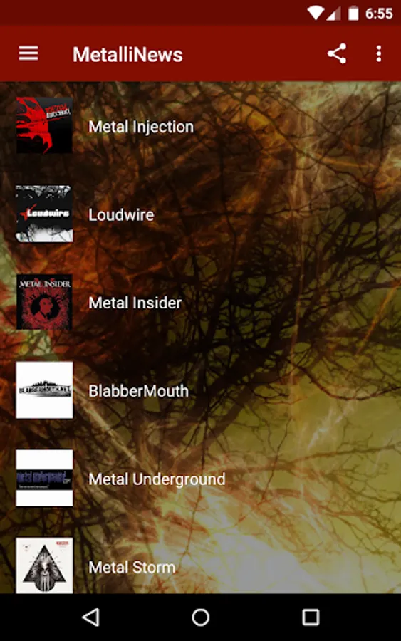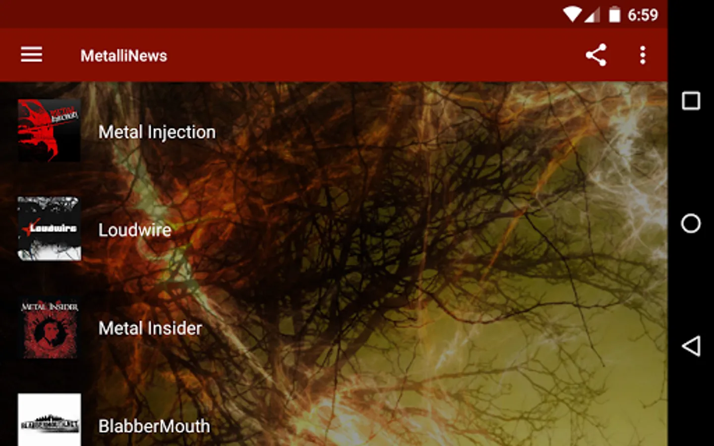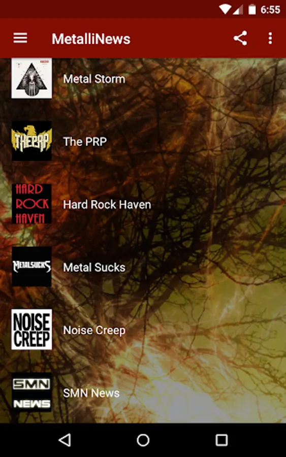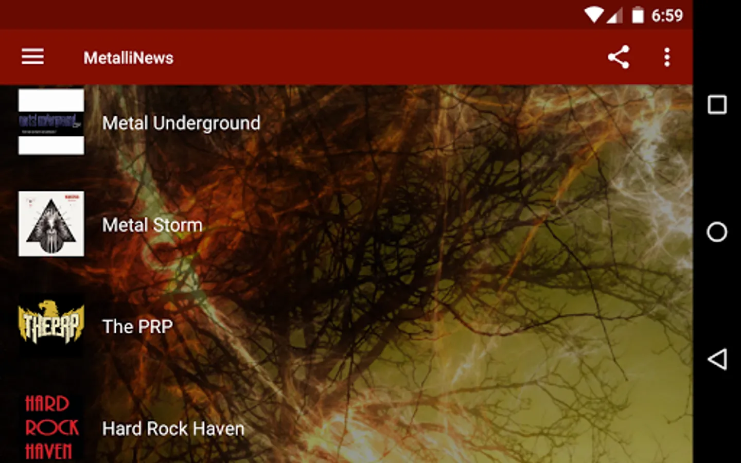 The application uses RSS feeds to display news from 13 different news sources - they are news websites, magazines, web portals, all of them renowned and with many years in the heavy metal and hard rock ecosystem.