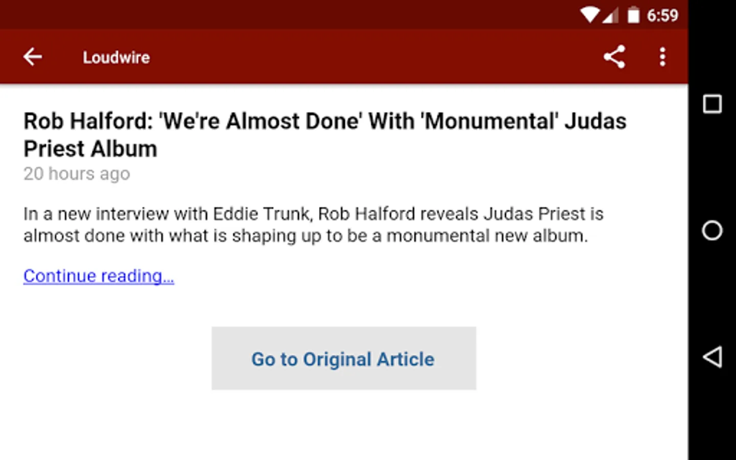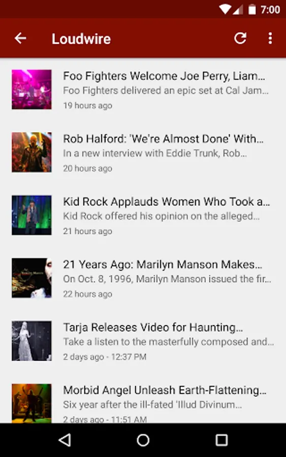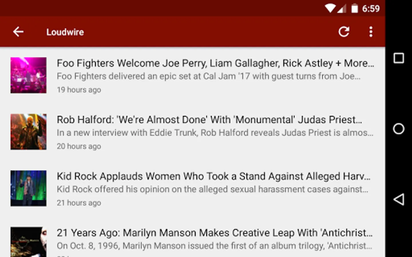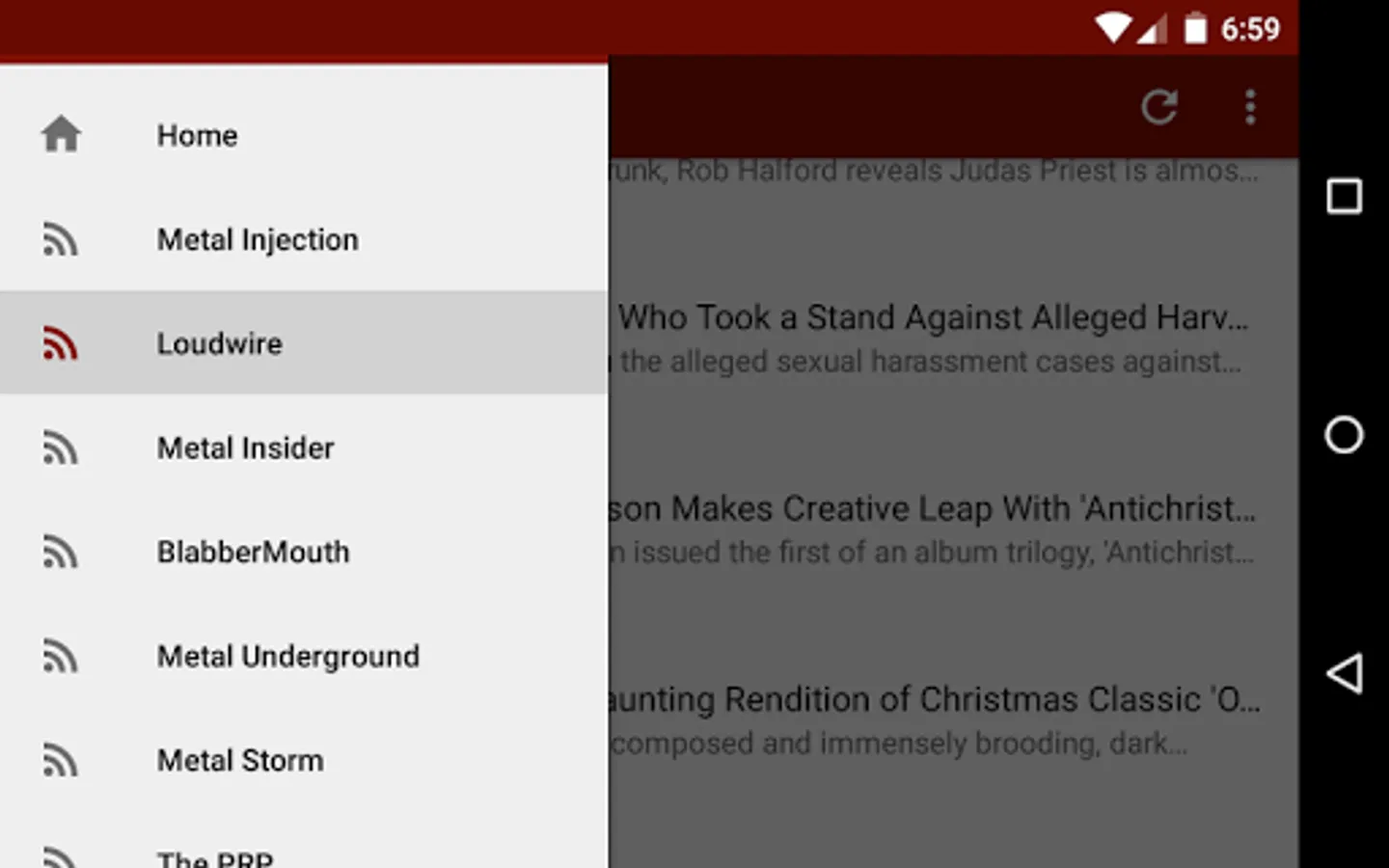 The application uses RSS feeds to display news from 13 different news sources - they are news websites, magazines, web portals, all of them renowned and with many years in the heavy metal and hard rock ecosystem.