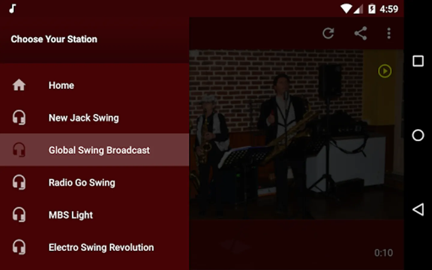 * Wide list of radio stations, makes the app ideal for people who can't have enough of swing music.