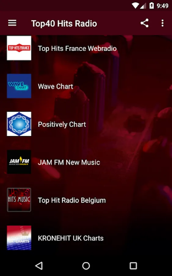 We carefully selected the top stations on the planet for the latest hits in pop, electronic, r&b and other styles of music and we added them all in this amazing radio app. Stations from Europe, Asia, U.S.A. and other parts of the world have been included, as long as they play top hits music.