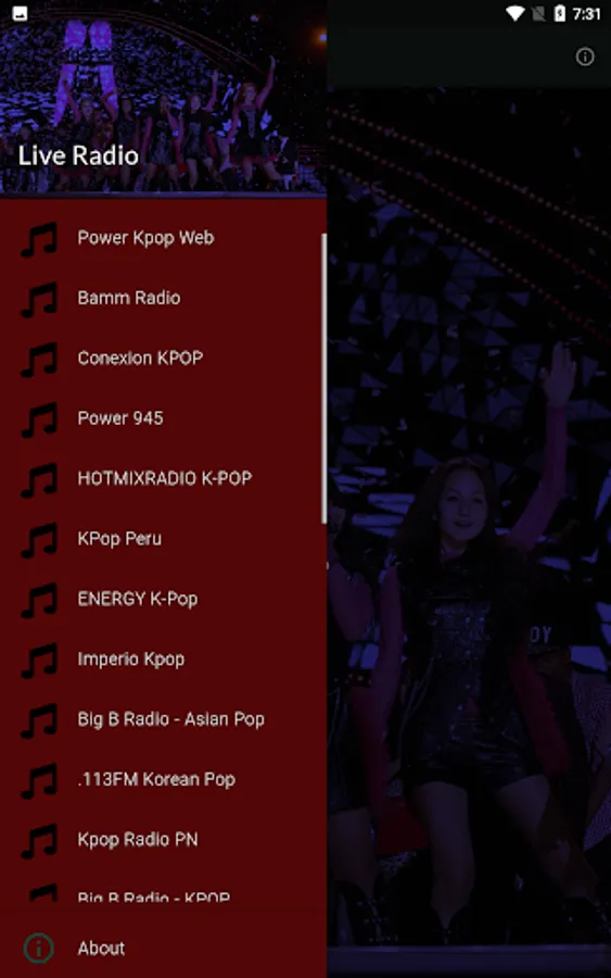Grab this app for countless hours of online K-pop music radio. We got the most exciting and popular stations added, with their logo, stylish design and song information display. If you don't recognize a song, the text at the bottom of the station page will inform you about the artist and the song title! This way you will also discover artists you had not heard of.
