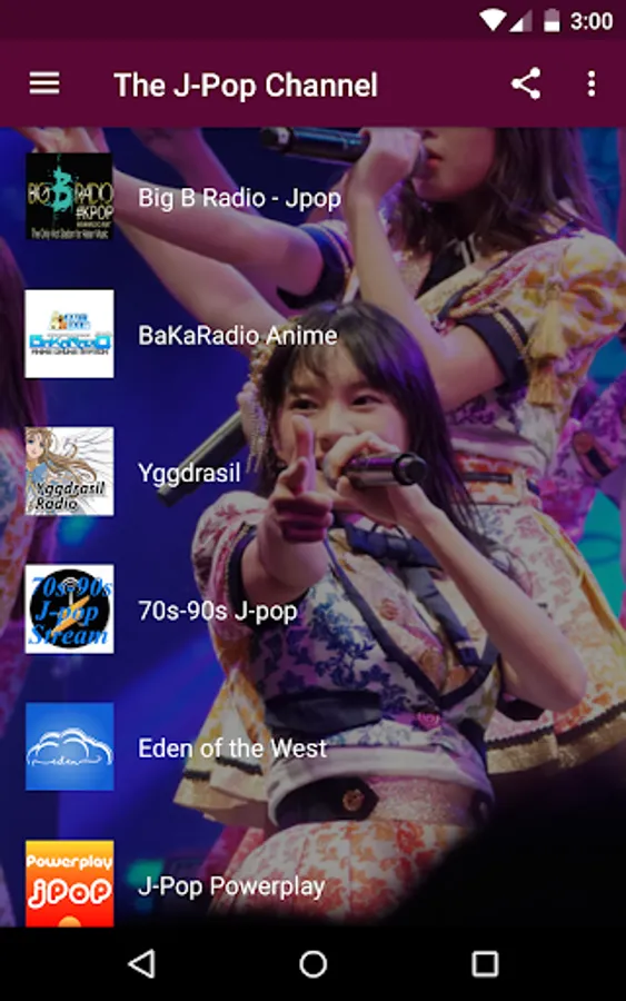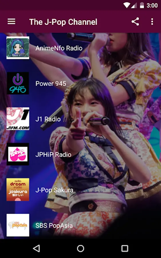 * Wide list of radio stations, makes the app ideal for people who can't have enough of Japanese pop!