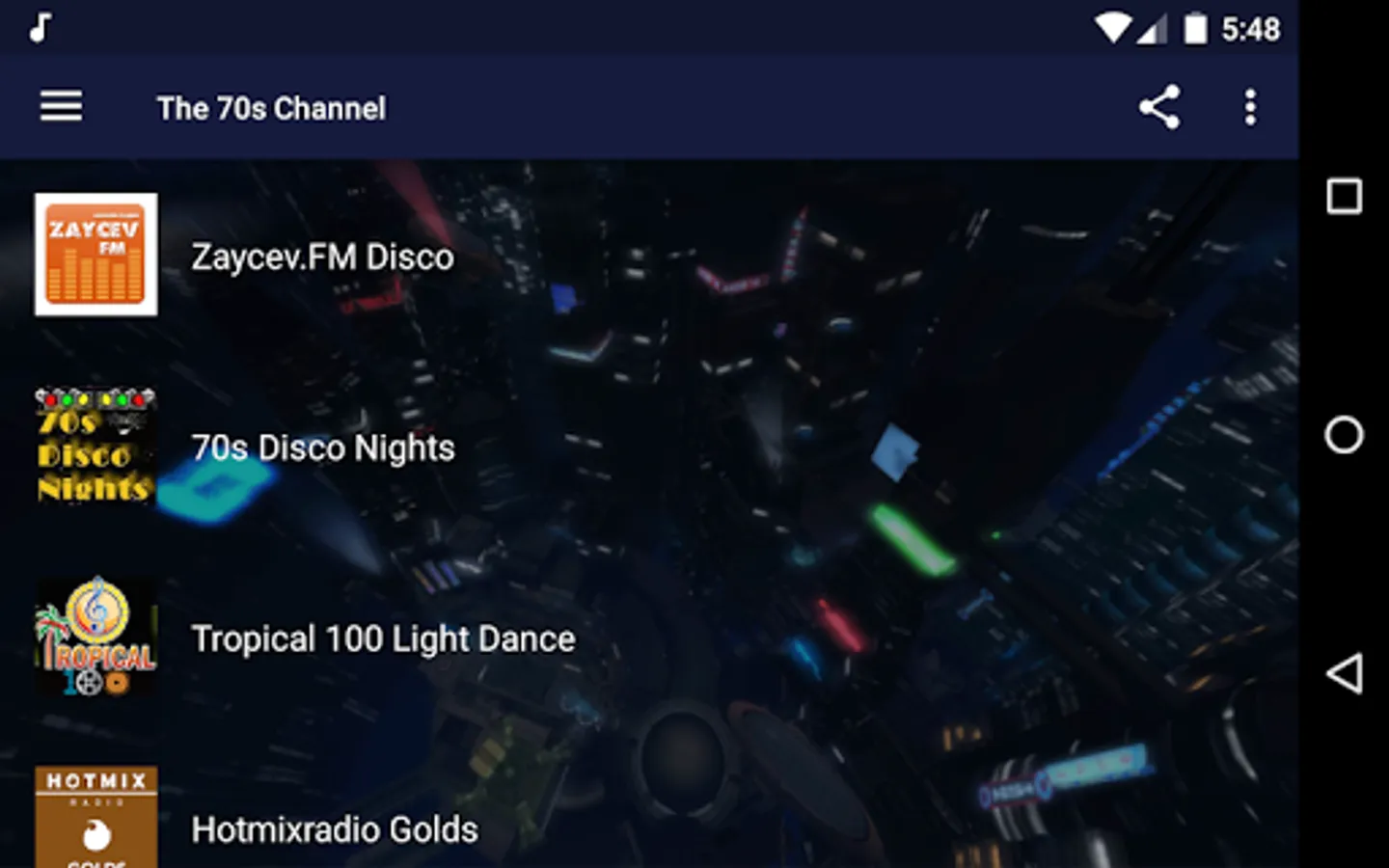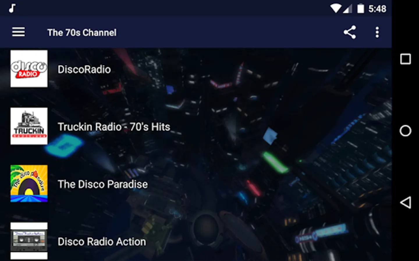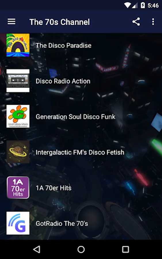 Grab this app for countless hours of online 70s music radio. We got the most exciting and popular stations added, with their logo, stylish design and song information display. If you don't recognize a song, the text at the bottom of the station page will inform you about the artist and the song title! This way you will also discover artists you had not heard of.