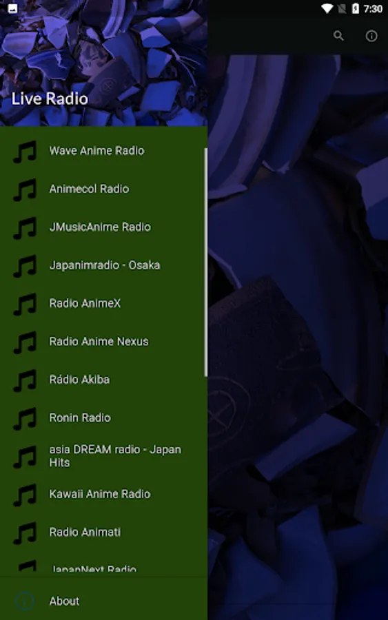 * Wide list of radio stations, makes the app ideal for people who can't have enough of anime scores and soundtracks.