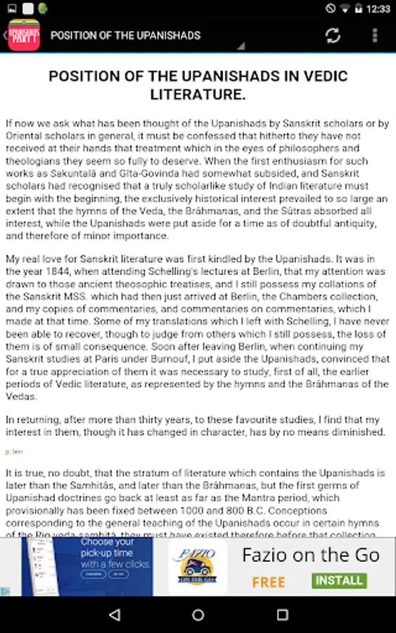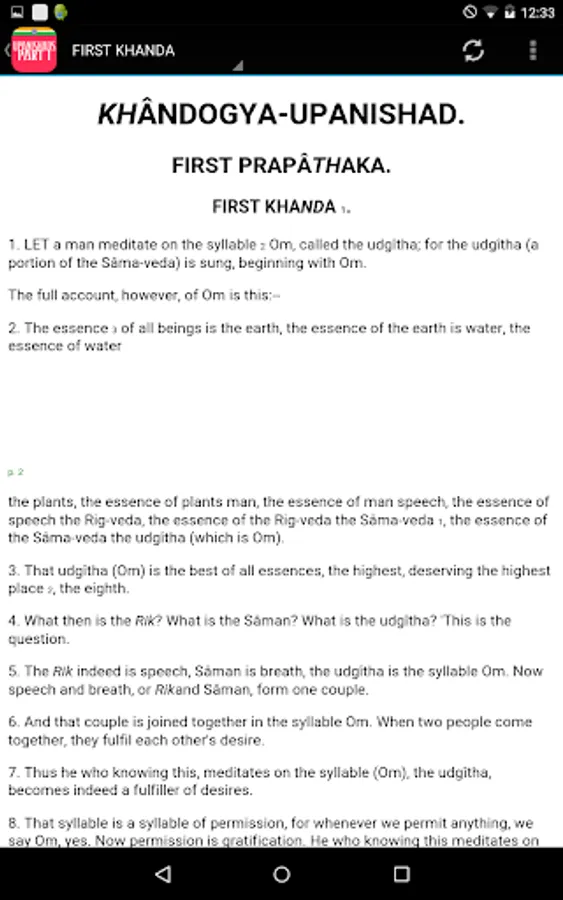 The Upanishads translated here are the Chandogya, Talavakara, Aitreya-Aranyaka, the Kaushitaki-Brahmana, and the Vajasaneyi Samhita.