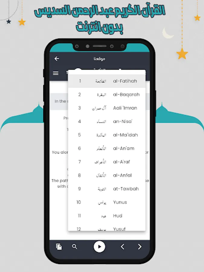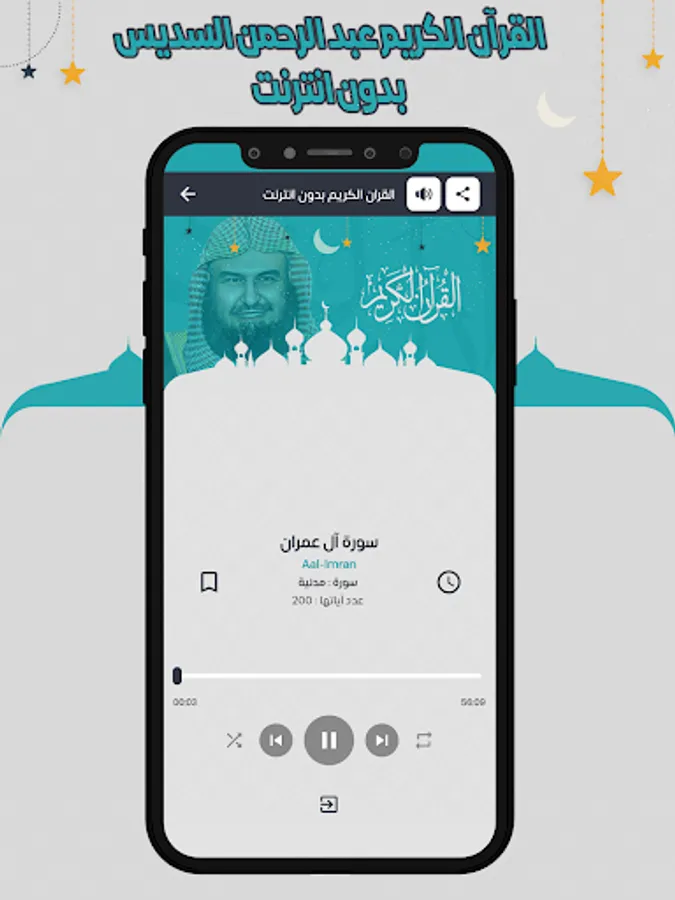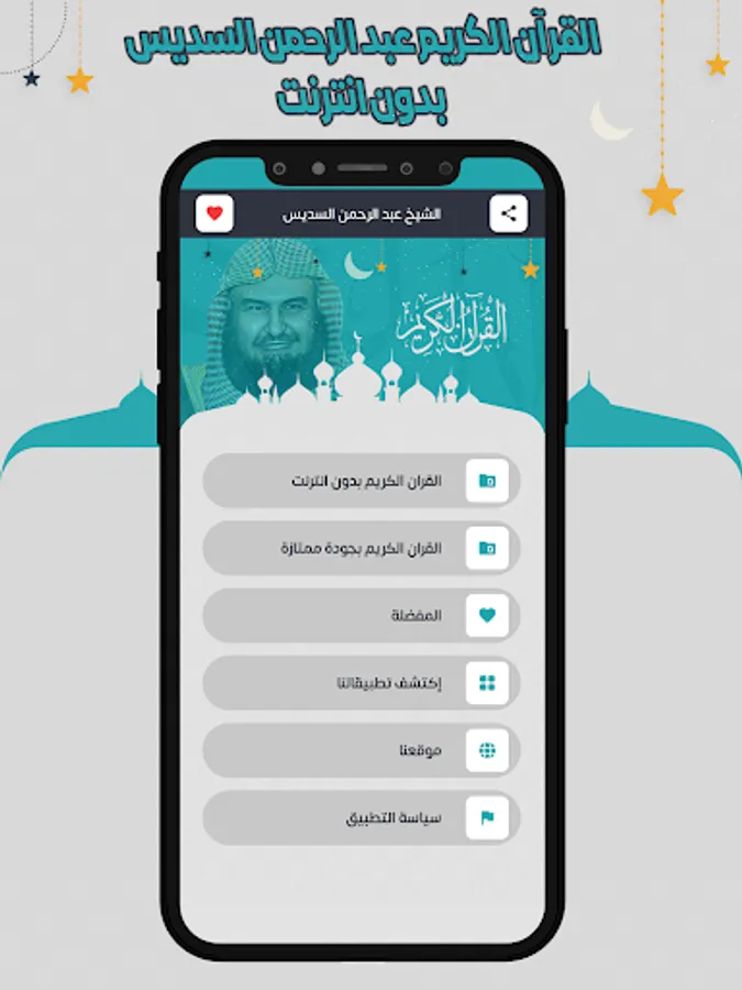 The Holy Quran application with the voice of Abdul Rahman Al-Sudais allows you to hear all the surahs of the Noble Qur’an through your mobile phone or tablet device with ease through one program that contains all the surahs of the Holy Qur’an. The store for Android phones. The Holy Quran application can be downloaded with the voice of Abdul Rahman Al Sudais with ease, so that you can enjoy the recitation of the Holy Quran with the voice of Sheikh Abdul Rahman Al Sudais wherever you want.