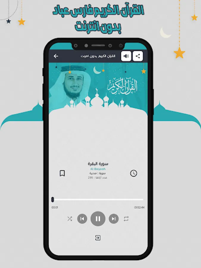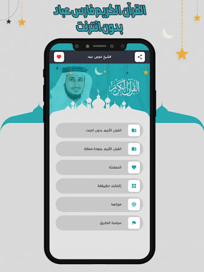 After downloading the application, you can listen to the surahs of the Holy Quran with the voice of Sheikh Faris Abbad for free anytime and anywhere with ease.