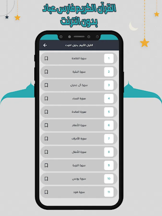 The Holy Quran application with Faris Abbad’s voice allows you to hear all the surahs of the Holy Qur’an through your mobile phone or tablet device with ease through one program that contains all the surahs of the Holy Qur’an. Android. The Holy Quran application can be downloaded with the voice of Faris Abbad with ease, in order to enjoy the recitation of the Noble Qur’an with the voice of Sheikh Faris Abbad wherever you want.