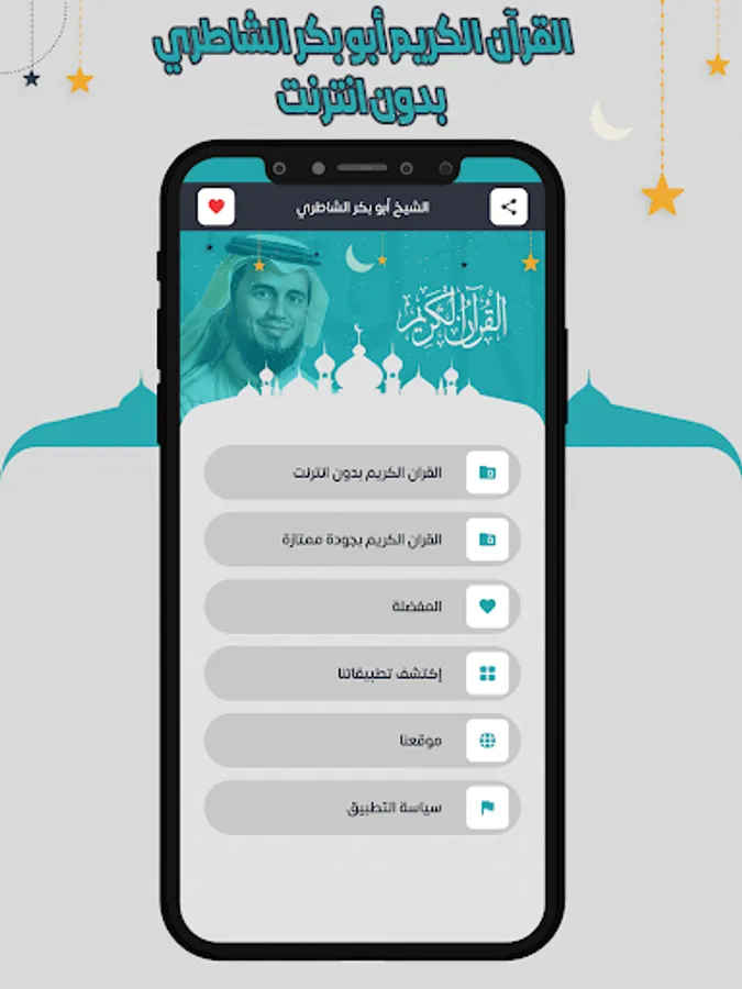 After downloading the application, you can listen to the surahs of the Noble Qur’an with the voice of Sheikh Abu Bakr Al-Shatry for free, anytime, anywhere, with ease.
