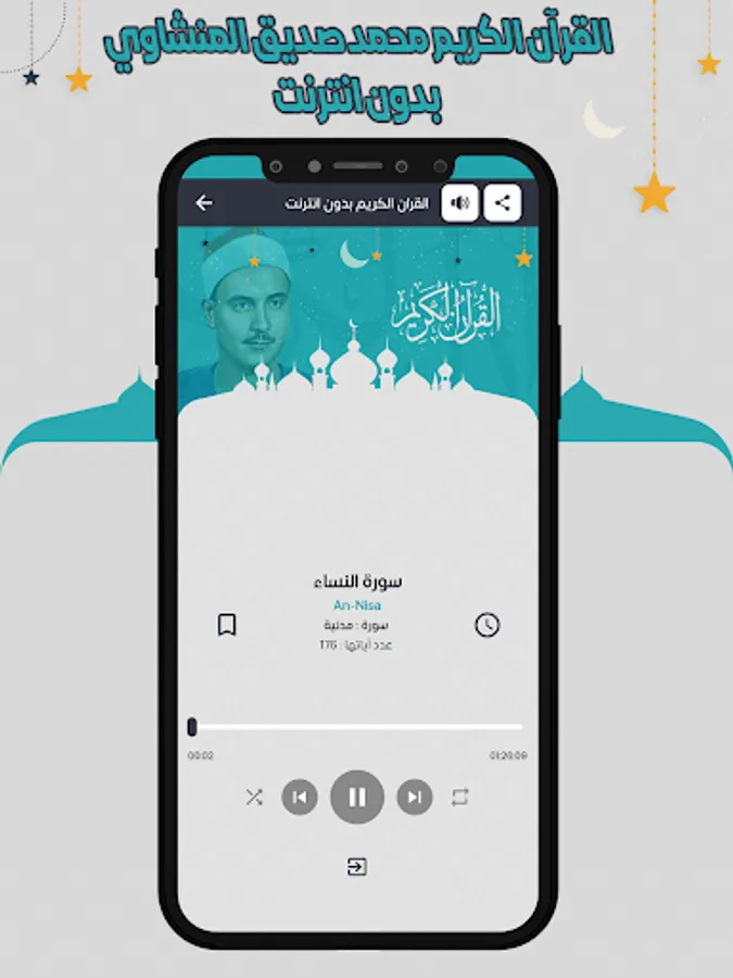 You can share the program link with your friends on different social media so that they can benefit from the Holy Quran program with the voice of Muhammad Siddiq Al-Minshawi and enjoy its features, the most important of which is that it is a simple free application that fits with all phones, occupying a simple area of the device.