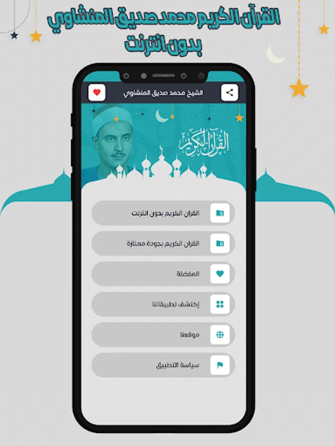 The application of the Noble Qur’an with the voice of Muhammad Siddiq Al-Minshawi allows you to hear all the surahs of the Holy Qur’an through your mobile phone or tablet device with ease through one program that contains all the surahs of the Holy Qur’an. The store for Android phones. The Holy Quran application can be downloaded with the voice of Muhammad Siddiq Al-Minshawi with ease so that you can enjoy the recitation of the Noble Qur’an in the voice of Sheikh Muhammad Siddiq Al-Minshawi wherever you want.