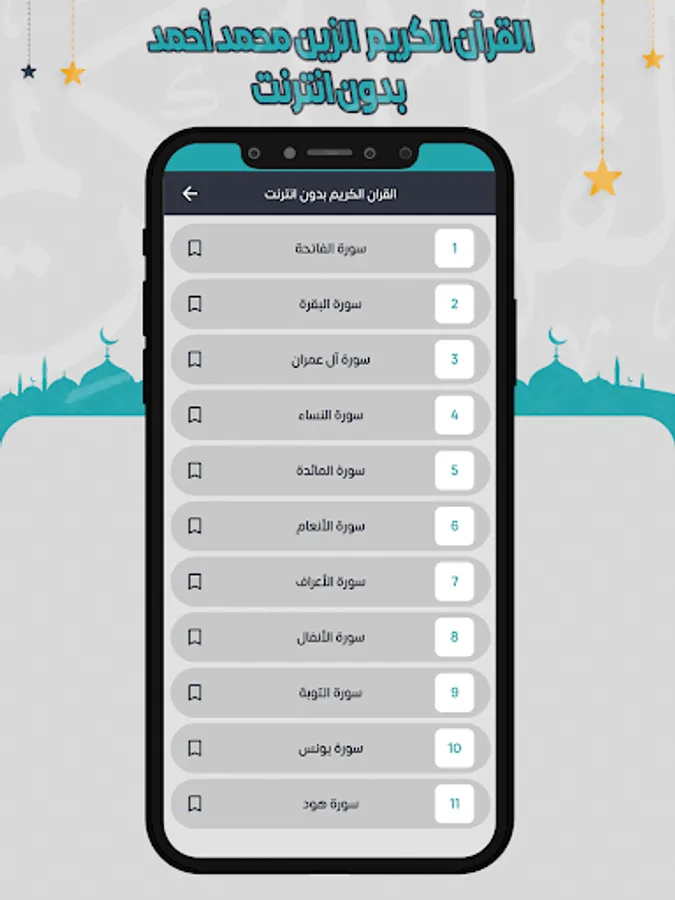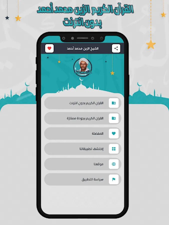 The application of the Noble Qur’an with the voice of Zain Muhammad Ahmad allows you to hear all the surahs of the Holy Qur’an through your mobile phone or tablet with ease through one program that contains all the surahs of the Holy Qur’an. The store for Android phones. The Holy Quran application can be downloaded with the voice of Al Zein Muhammad Ahmad with ease, so that you can enjoy the recitation of the Holy Quran in the voice of Sheikh Al Zain Muhammad Ahmad wherever you want.