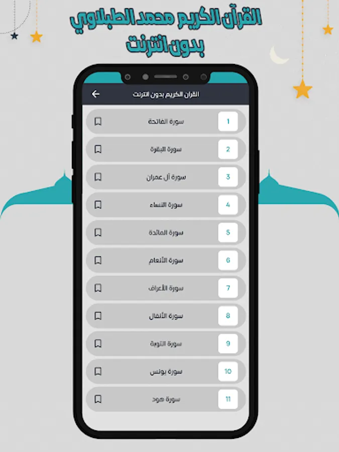 The application of the Noble Qur’an with the voice of Muhammad Al-Tablawi allows you to hear all the surahs of the Noble Qur’an through your mobile phone or tablet with ease and ease through one program that contains all the surahs of the Noble Qur’an, and the Quran recitation application is characterized by the voice of Muhammad Al-Tablawi by being free as it is available on the store for phones Android. And you can download the application of the Noble Qur’an with the voice of Muhammad Al-Tablawi with ease so that you can enjoy reciting the Noble Qur’an with the voice of Sheikh Muhammad Al-Tablawi wherever you want.