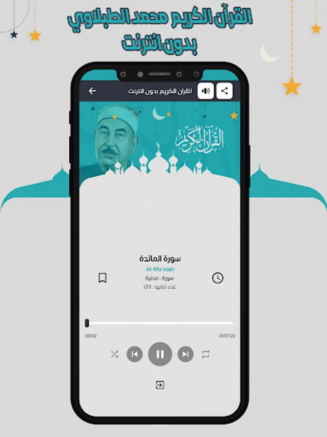 After downloading the application, you can listen to the surahs of the Noble Qur’an with the voice of Sheikh Muhammad Al-Tablawi for free, anytime, anywhere, with ease.