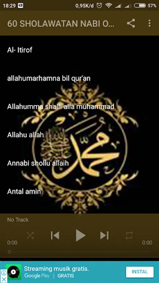 This application contains the set of songs sholawat Islamic prophet Muhammad