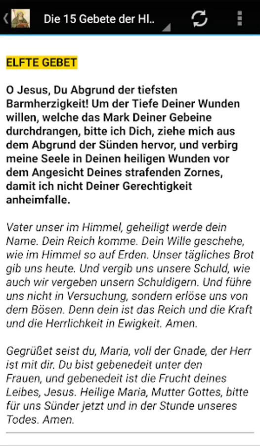 "If you adore this wilt, pray 15 Our Fathers and 15 Hail Mary during one year every day. And he taught the hl. Brigitta the 15 accompanying prayers. Is this year is over, you have worshiped each of 5480 wounds."