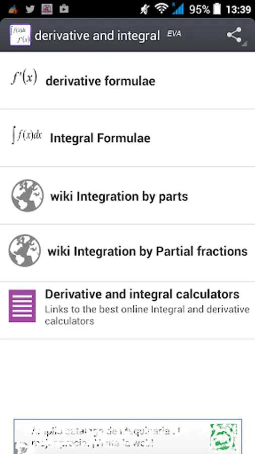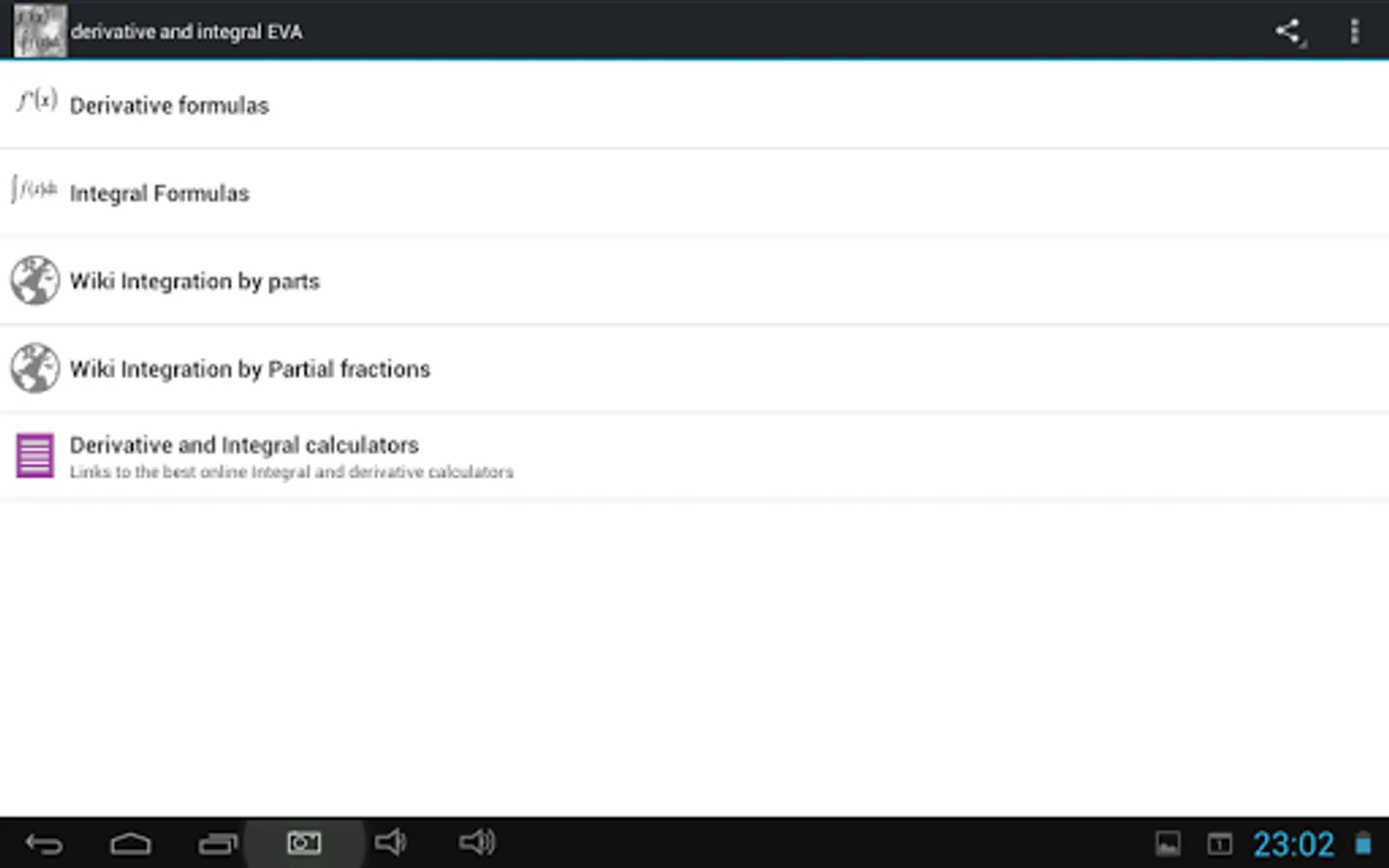 Furthermore the app has got a collection of links to derivative an integral calculators on line.