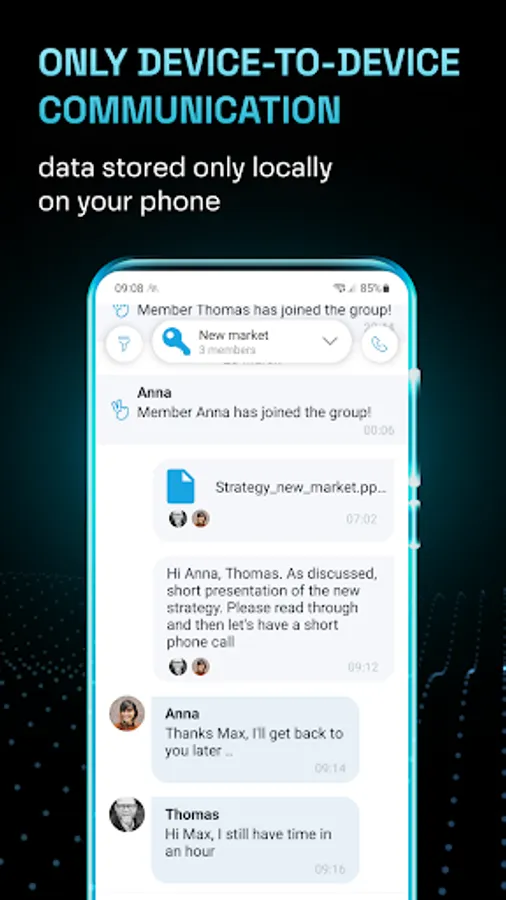Communications and data exchange take place in closed groups available by an invitation only. The invitation code is valid only once and for one hour.