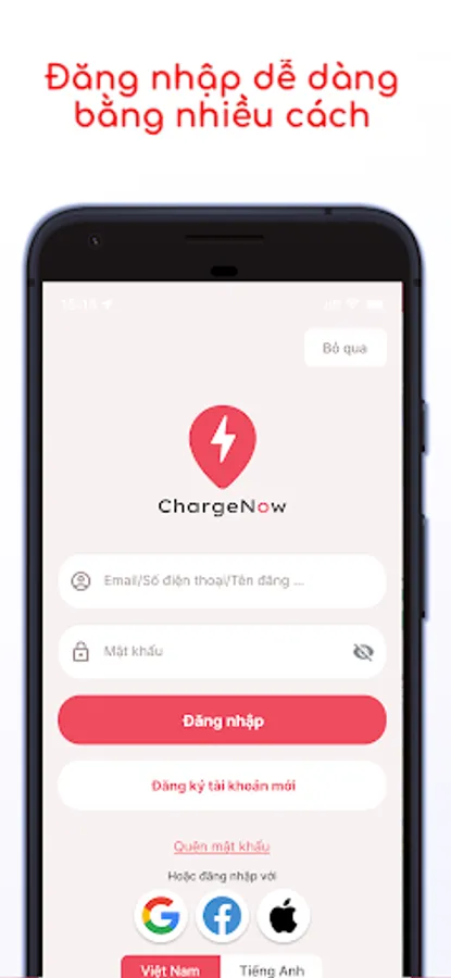 Step 2: To use advanced utilities that require identification, easily log in directly through your Facebook or Google account quickly and securely. Easy to charge with just scanning barcode.