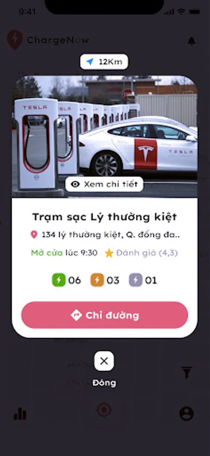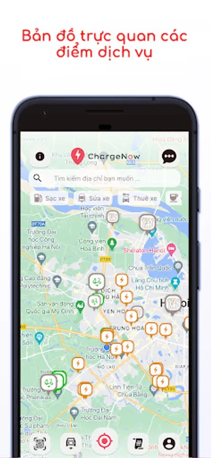 ChargeNow provides a map of charging stations, charging points, battery exchange points, car rental points and service points for electric vehicle users in Vietnam. Whether you are using two-wheel electric motorbikes Vinfast, EVGO, Pega, Datbike, Yadea .. or electric cars Tesla, Taycan, Vfe34... Whenever your electric vehicle needs support, you will always find the most effective and timely support through the ChargeNow app. Or even if you are still hesitant about the experience of using electric cars, look for the nearest electric car rental support locations to you to be able to experience the car, before making a final decision. long-term attachment to it.