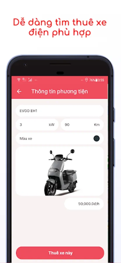 Step 1: Download the installation and use it immediately for finding service points for electric vehicle users or locations that support electric car rental, electric vehicle battery rental.