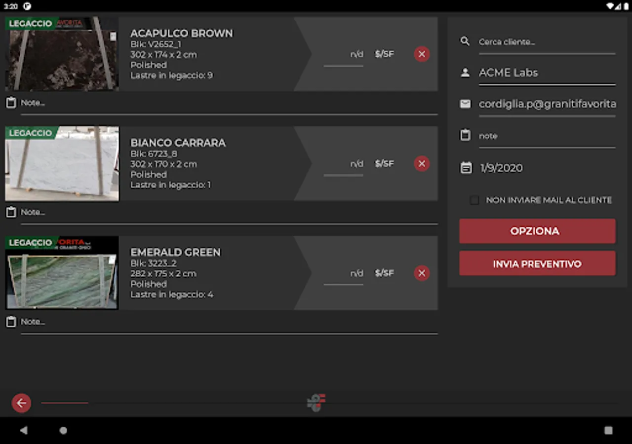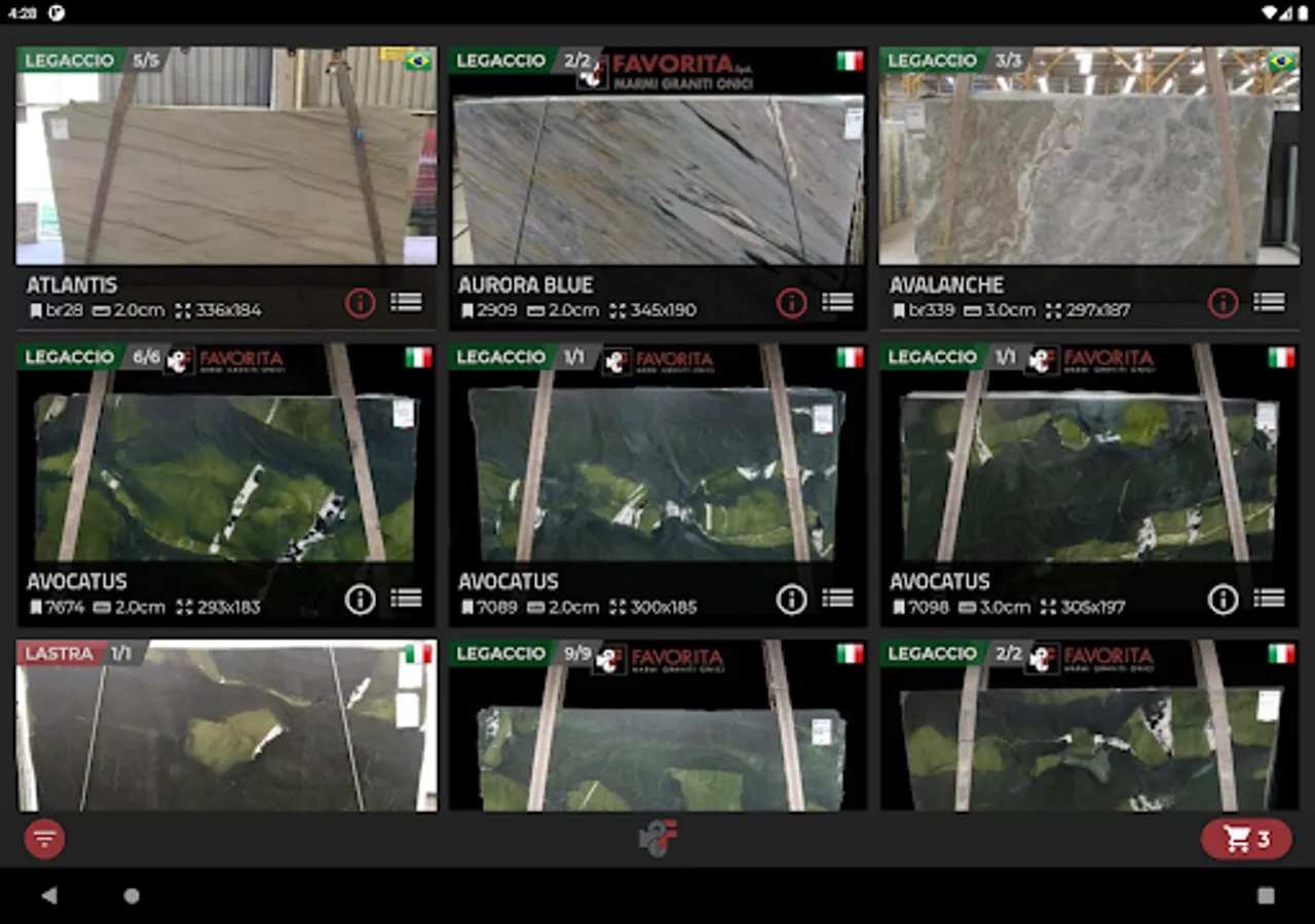 Enjoy is the application of Favorita Spa that allows you to view the availability of the various warehouses and photos of the various materials in real time.