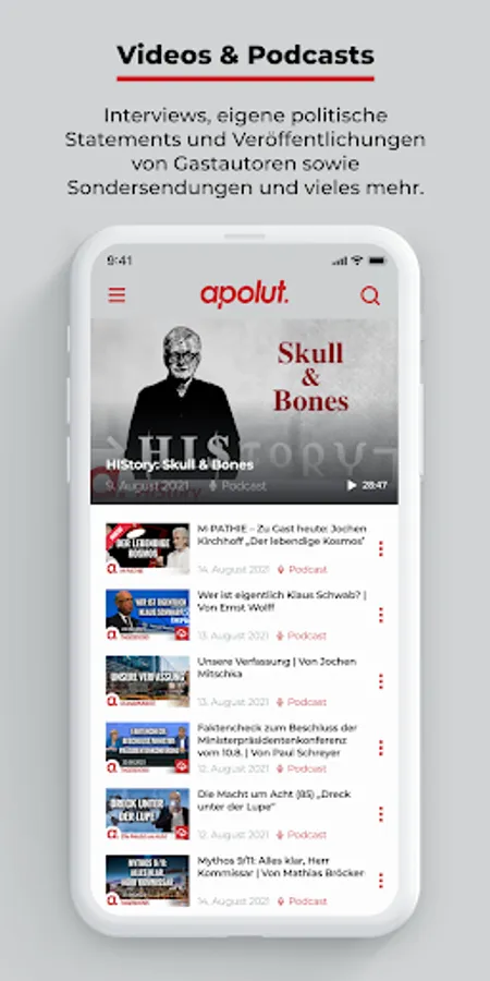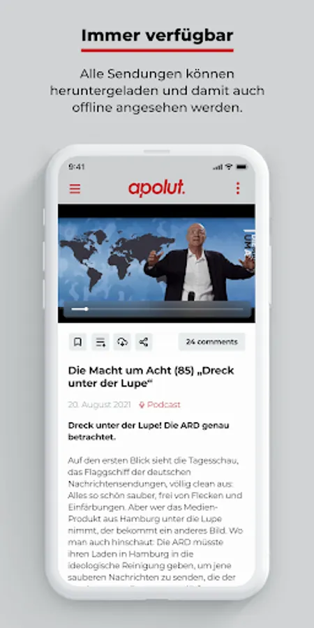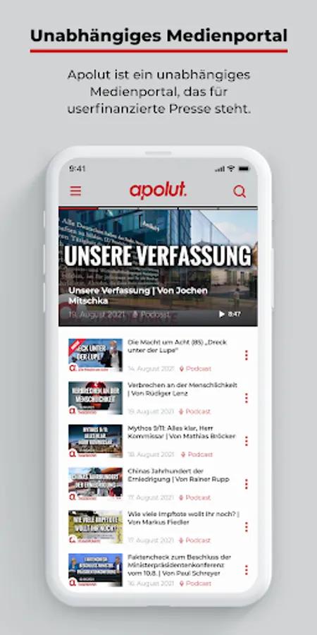 Demokratie lebt von Transparenz und Meinungsvielfalt. Eine komplexe Gesellschaft kann den inneren und äußeren Frieden nur dann bewahren, wenn es ihr dauerhaft gelingt, eine positive Streit- und Debattenkultur zu pflegen. Dieser Erkenantnis fühlt sich apolut verpflichtet! Wir sind eine unabhängige Medienplattform, die es sich zur Aufgabe gemacht hat, zu den unterschiedlichsten Themen mehr als nur eine einzige Perspektive anzubieten. Apolut steht für freie und 100% userfinanzierte Presse. Auf apolut finden Sie diverse Formate: Sowohl spannende Video-Interviews mit Personen der Zeitgeschichte, als auch Video-Serien, die Bildungs- und Informationslücken schließen wollen. Wer tägliche politische Berichterstattung erwartet, ist bei apolut richtig. Unsere Ziele - Meinungsvielfalt und Pressefreiheit - können wir nur dann erreicht werden, wenn die bisherigen Unterstützer von KenFM die Transformation zu apolut mittragen und apolut mit einem Dauerauftrag unterstützen. Wir glauben daran!