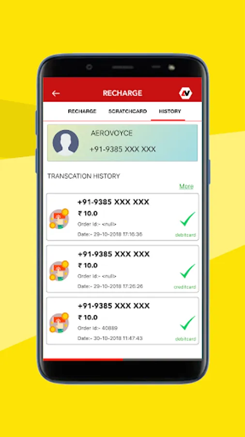 Launching all new instant recharge for other AEROVOYCE number and Feasible scratch card recharge option!