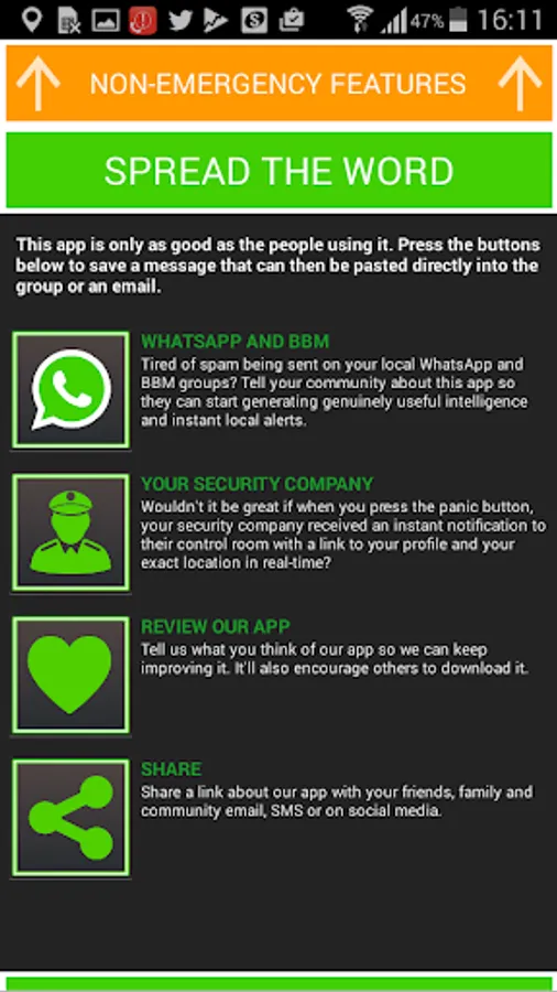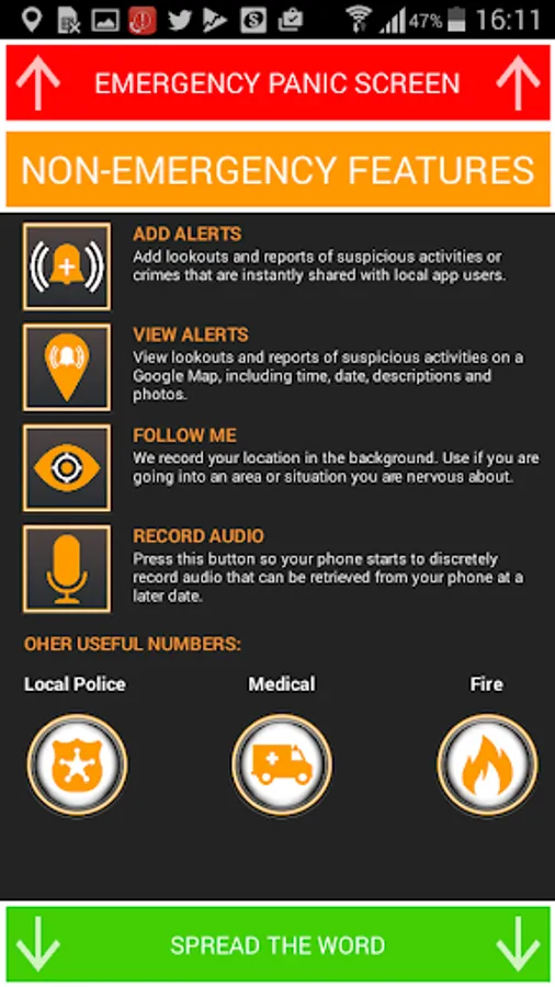 - local app users will also receive an alert showing your location, photo and name (opt in feature).