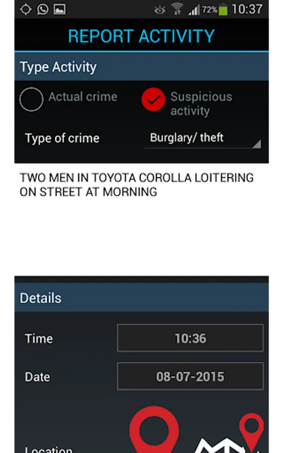 - easily report crimes and suspicious activities and automatically notify people in your community.